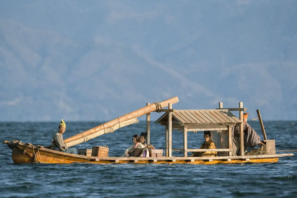 この日は都を離れ、越前に向かうまひろや為時、乙丸(矢部太郎)らが琵琶湖を舟で渡るシーンなどを撮影。“特注”の舟を実際に湖上に浮かべたロケ写真は迫力満点だ。