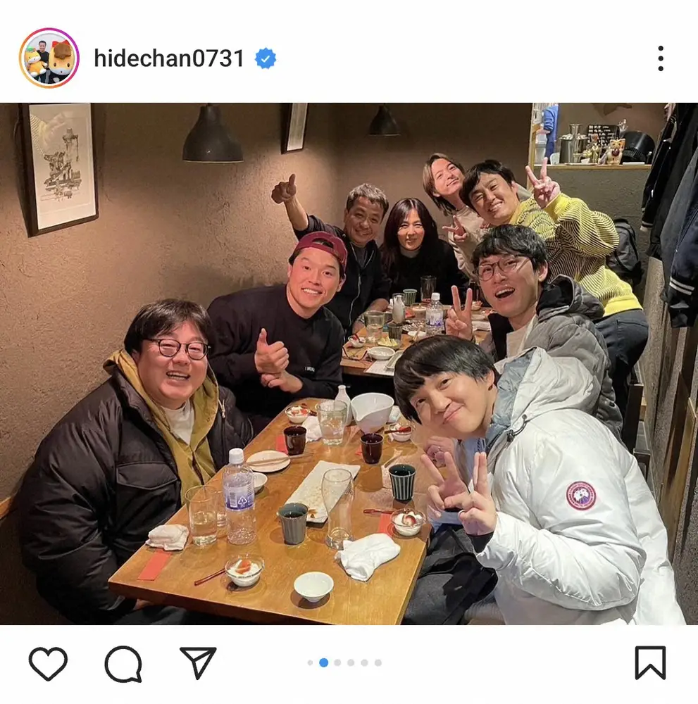 タレントの中山秀征(56)が7日までに自身のインスタグラムを更新。群馬県出身の著名人が集う「上州鶴の会」の食事会ショットを披露した。
