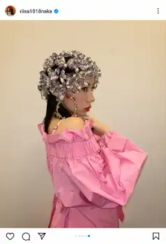 仲は雲や雪、動物の絵文字のみでコメント。スタジオで白い大きなリボンを頭につけた、個性的なファッションのオフショットを掲載した。