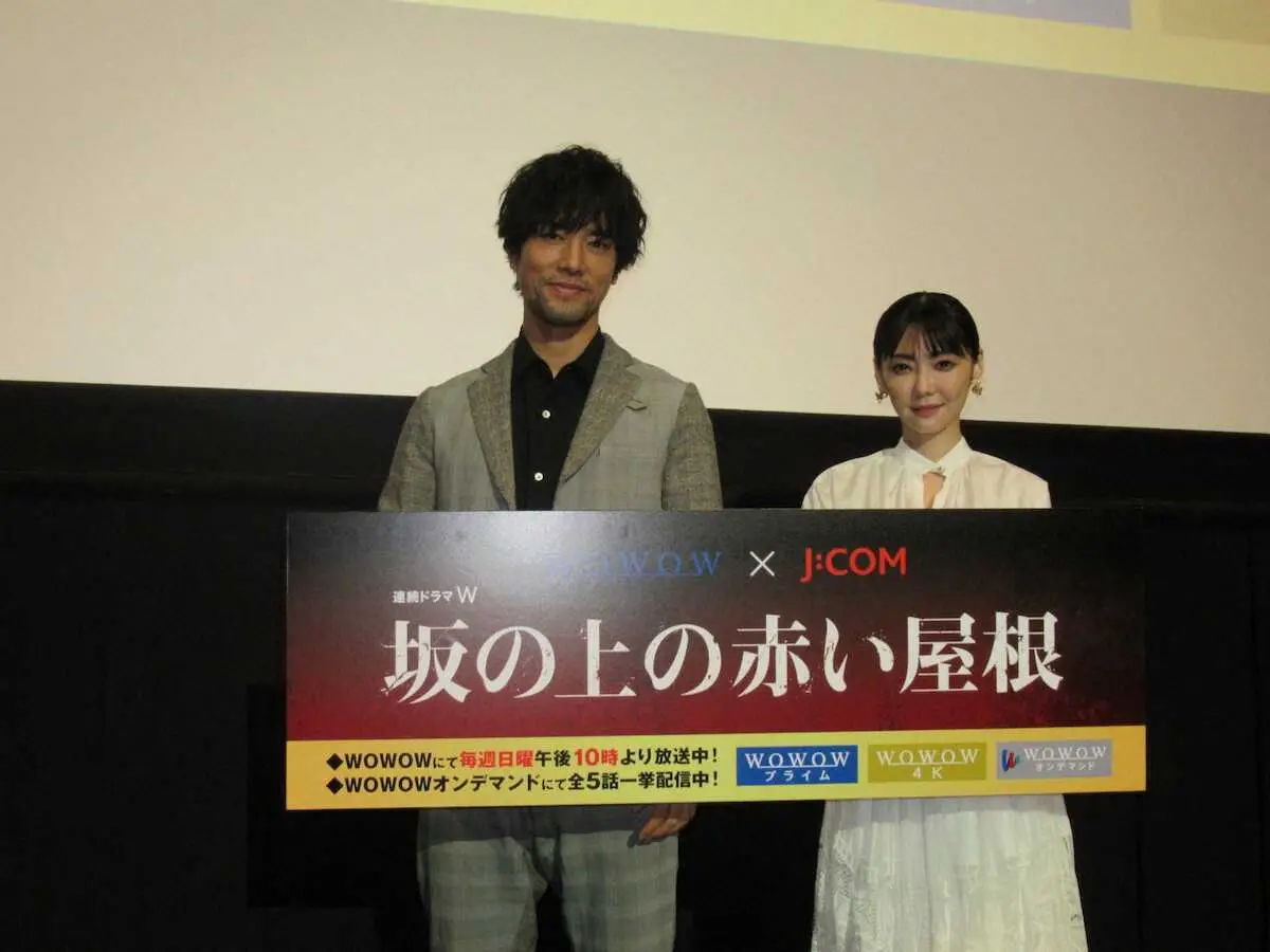 俳優の桐谷健太(44)、倉科カナ(36)が7日、大阪市内で開かれたWOWOWドラマ「坂の上の赤い屋根」(3日配信スタート)の第1話の完成披露試写会の舞台あいさつに登壇。大阪・天六出身の桐谷は「久しぶりの大阪。うれしい。すごく重厚な話。登場人物それぞれの黒い渦が重なり合っていく作品です」とPR。倉科は「人間の業がすごく色濃く描かれていて、共感できるところもあります」と見所を訴えた。