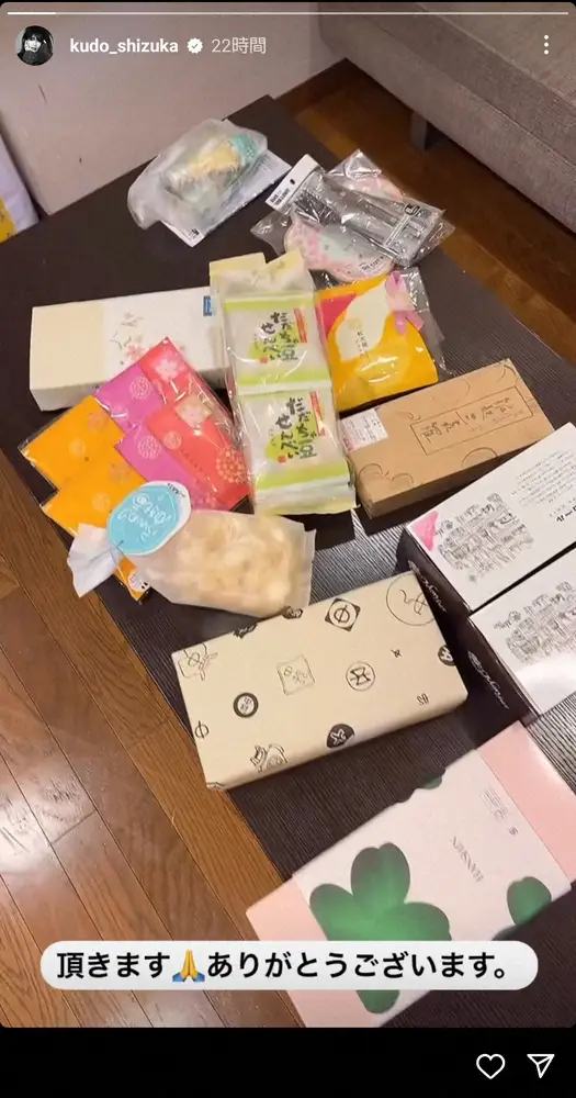 工藤静香のインスタグラム(@kudo_shizuka)より 工藤静香 「差し入れ色々ありがとうございました」和菓子にテンション爆… ギャラリーで見る この記事のフォト 2024年03月08日の画像一覧 もっと見る 2024年03月08日の画像をもっと見る