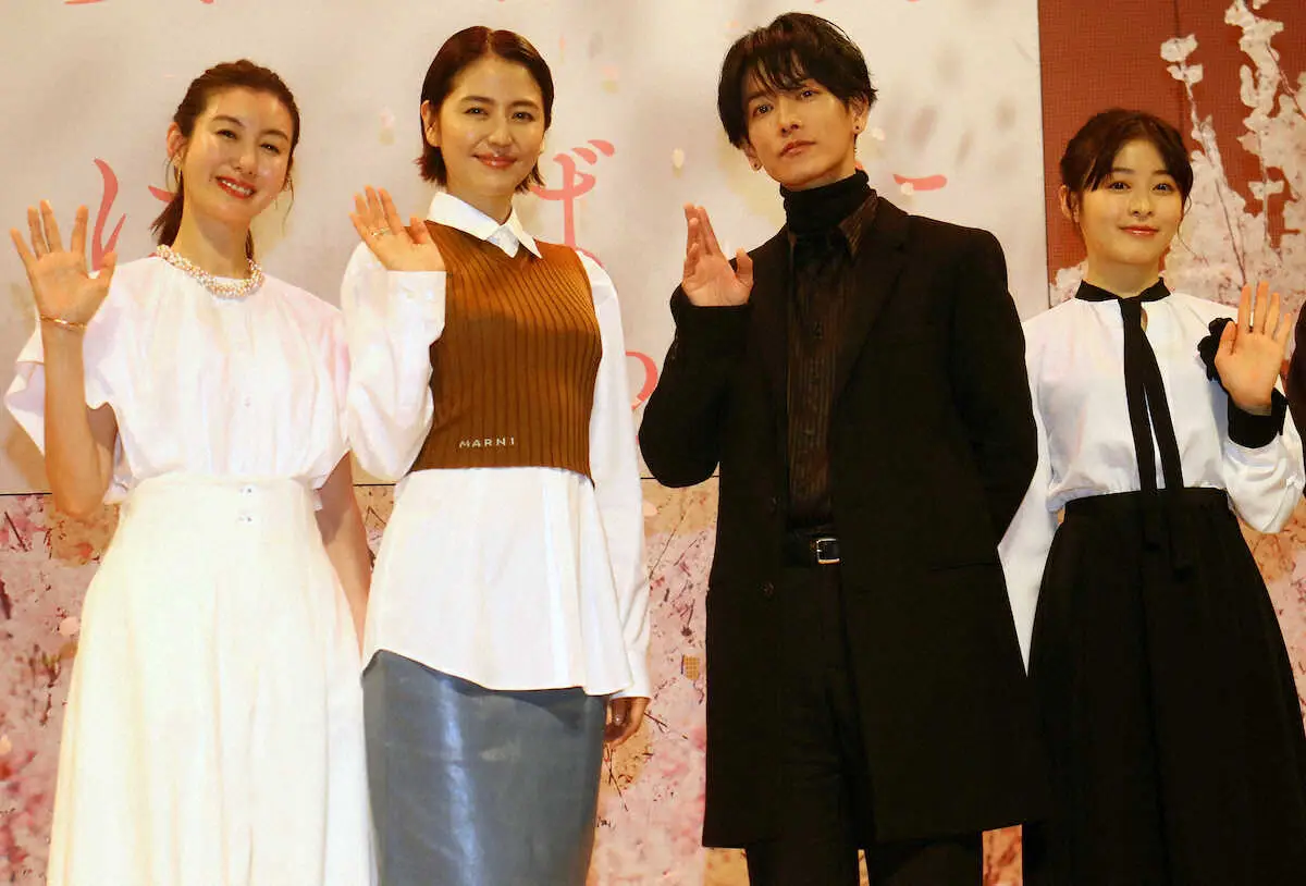 俳優の佐藤健(34)、長澤まさみ(36)らが7日、都内で映画「四月になれば彼女は」(監督山田智和、22日公開)の完成披露試写会に出席した。