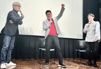 佐々木蔵之介 完成披露試写会に続き初日舞台あいさつも雪「出演者の中に雪男か雪女が…」