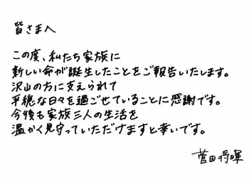 菅田将暉直筆メッセージ 菅田将暉&小松菜奈夫妻に第1子誕生 幸せあふれる直筆文字で「今後も家族… ギャラリーで見る この記事のフォト 2024年03月09日の画像一覧 もっと見る 2024年03月09日の画像をもっと見る