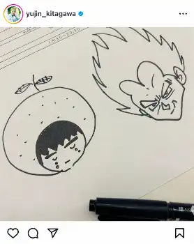 続けて「だから漫画を読む時は、内容はもちろん、書き方もめちゃくちゃ詳細に研究していた」と明かした。また「久しぶりに、台本の空きスペースに、ベジータを描いてみた。腕は落ちたが、まだなんも見ないでかけました」と自身が描いたベジータの絵を披露し「鳥山明先生のご冥福を心よりお祈りいたします」と悼んだ。