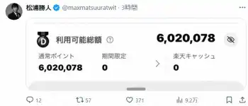 貯まったポイントについてコメントが寄せられると、602万ものポイントが貯まった画面のスクリーンショットを公開した。