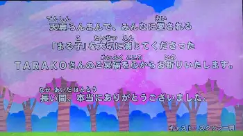 この日の放送は死去発表後初めて。2015年4月の「おばあちゃんの誕生日」が再放送され、まる子の姉役が16年に死去するまで担当した水谷優子さん(享年51)、ナレーションが21年に引退したキートン山田さん(78)だった。TARAKOさんの出演回は24日の放送が最後となる。