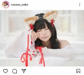 人気コスプレーヤー・猫乃ここ キツネ巫女コスプレ披露に「これは、かわゆい」「愛らしい!」「萌」