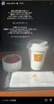 IMALUは「最近の飛行機代が高くて」と切り出し、「いつもより4000円ぐらい高いのが1番安いフライトだったから これしかないって思って買ったらまさかのファーストクラスだった」「ちょっとラッキー」と思わぬ"幸運"だったことを投稿した。