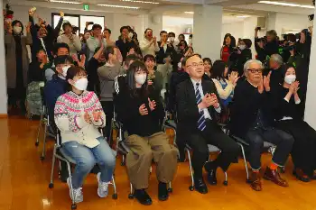 スタジオジブリのスタッフは、東京都小金井市のオフィスに約50人が集まり、授賞式の生中継が流れるモニターに見入った。プレゼンターが「君たちはどう生きるか」の英題「The Boy and the Heron(少年とサギ)」の「The」と言った瞬間、「おー!」と大きな拍手が起こった。涙を流すスタッフもいた。宮崎監督は現地に赴かず、中島清文副社長らがバックステージでオスカー像を受け取った。