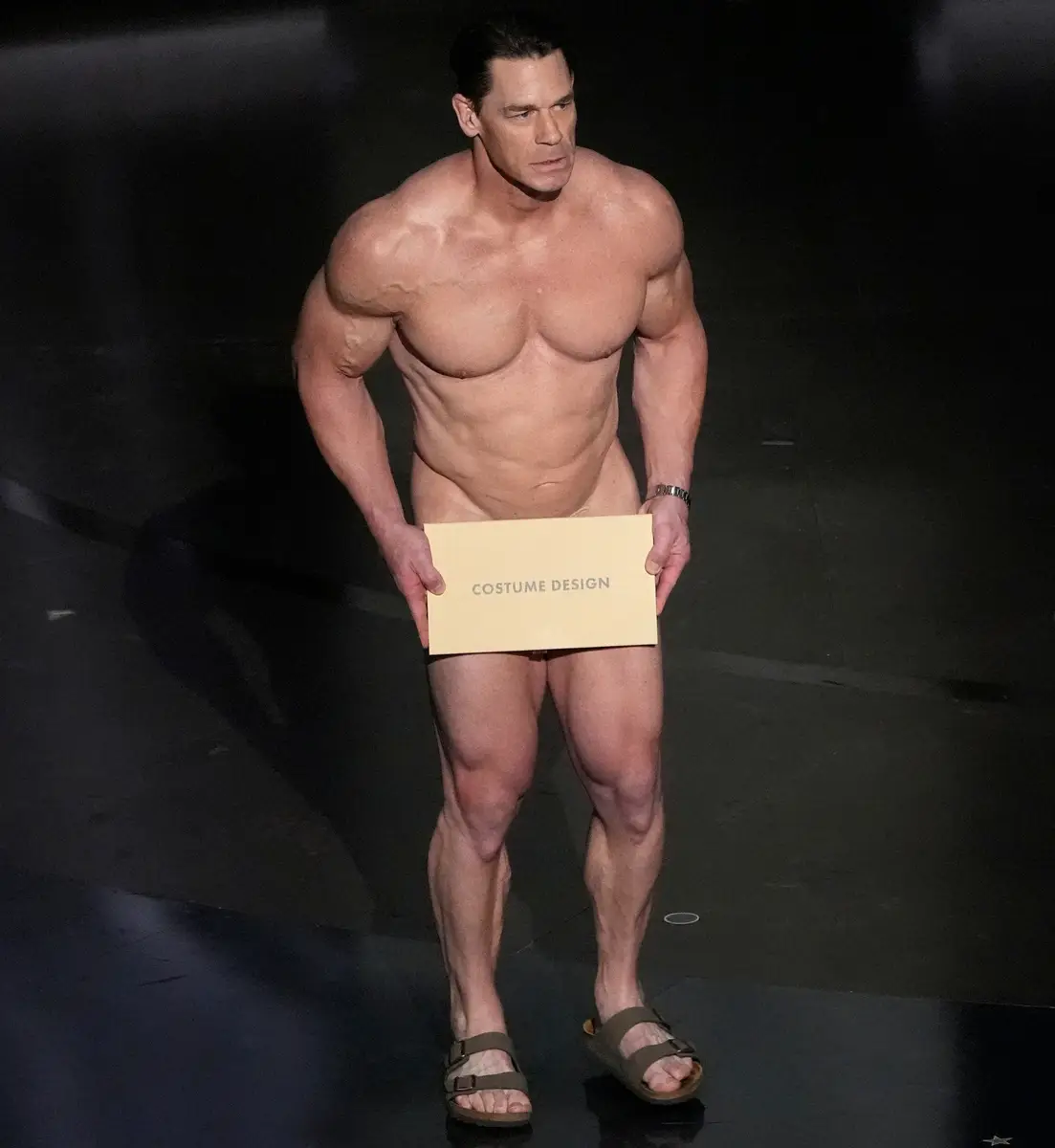 衣装デザイン部門のプレゼンターを務めた元WWEスーパースターで俳優のジョン・シナ(46)が股間だけ封筒で隠したで登壇した。