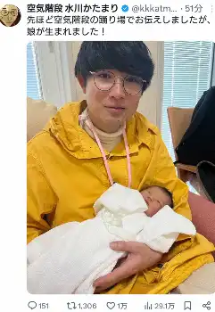 その後自身のX(旧ツイッター)でも公表し、「先ほど空気階段の踊り場でお伝えしましたが、娘が生まれました!!」と報告し、我が子を抱く2ショットを披露した。