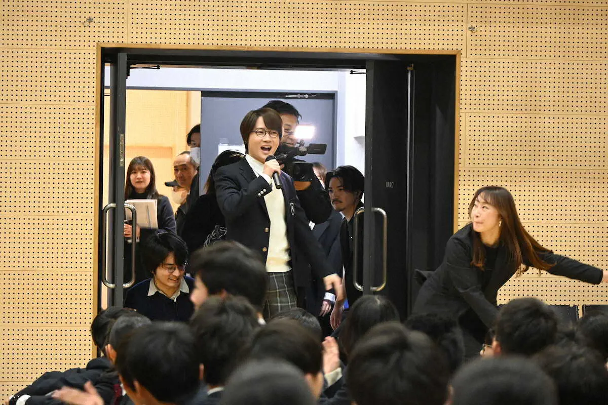 俳優の神木隆之介(30)が、東京・豊島区立池袋中学校で行われたauが実施する卒業サプライズの学校応援企画「さぁ何やる?青春式」に参加。同校の卒業式予行演習にサプライズ登場し、生徒らと今後の夢について語り合った。