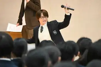 神木隆之介 CMキャラクターに扮し中学校にサプライズ登場!夢の時間に卒業式予行演習の生徒大興奮