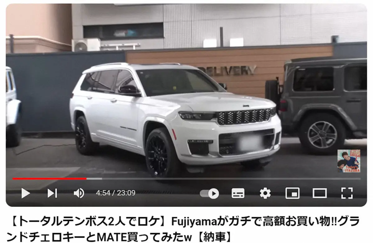 藤田はこれまではジープ・ラングラー アンリミテッドを所有。相方の大村朋宏と共にディラーへ向い、新愛車のジープ・グランドチェロキーでも最上級のグレードである3列シートの「L SUMMIT RESERVE」が納車された。