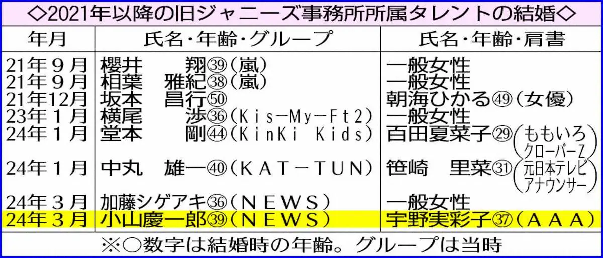 宇野実彩子公式インスタグラム(@misako_uno_aaa)から 小山慶一郎&宇野実彩子結婚 昨年他界した宇野の父誕生日に婚姻届 小山… ギャラリーで見る この記事のフォト 2024年03月14日の画像一覧 もっと見る 2024年03月14日の画像をもっと見る