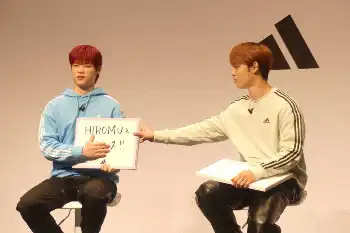 アディダス・スポーツウェアのアンバサダーに就任したJO1とINIを代表し、イベントに登場した(左から)木村柾哉と與那城奨