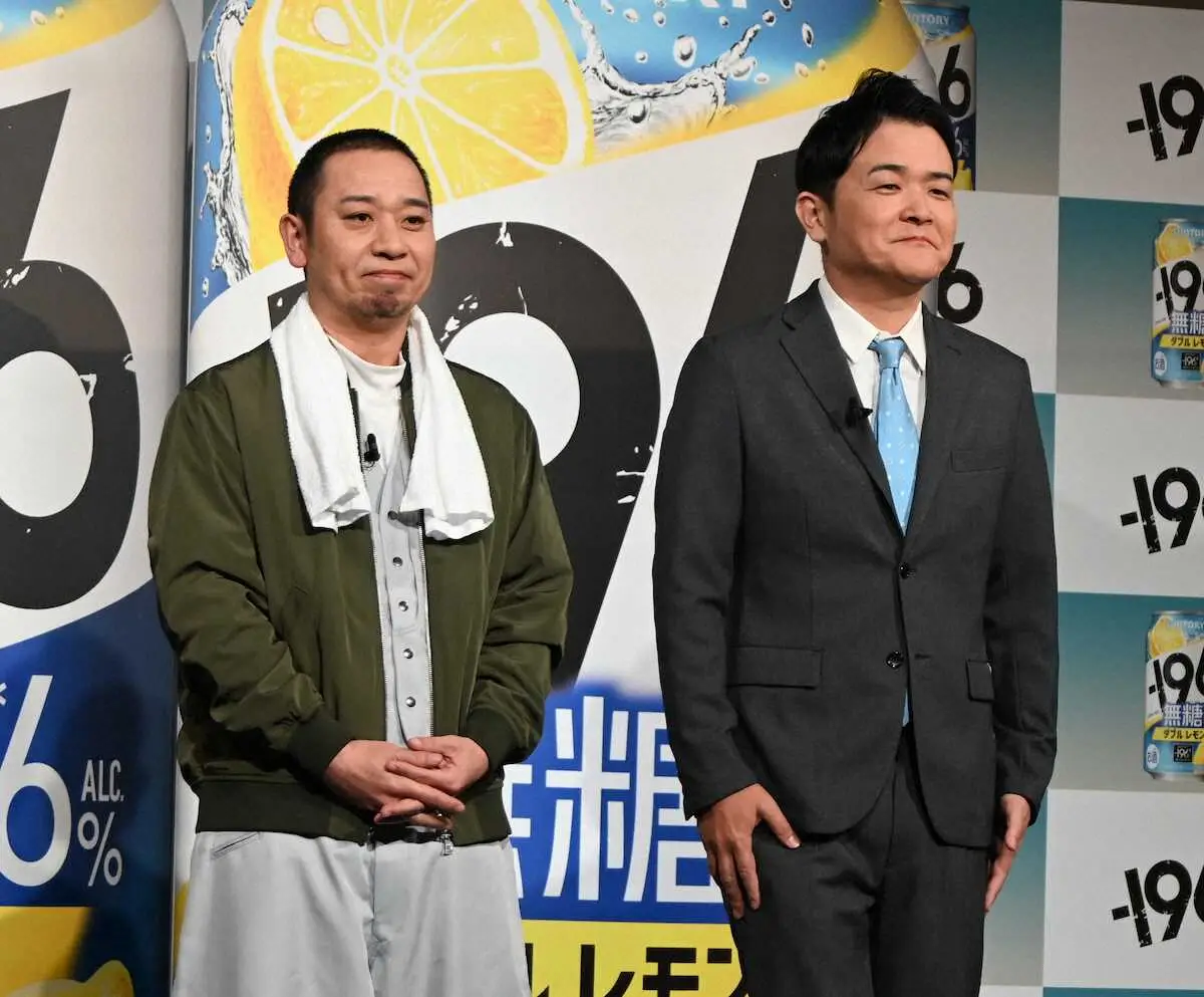 サントリーチュウハイ「ー196(イチキューロク)」新CM発表会に出席したお笑いコンビ「千鳥」大悟(左)、ノブ(撮影・小渕 日向子)