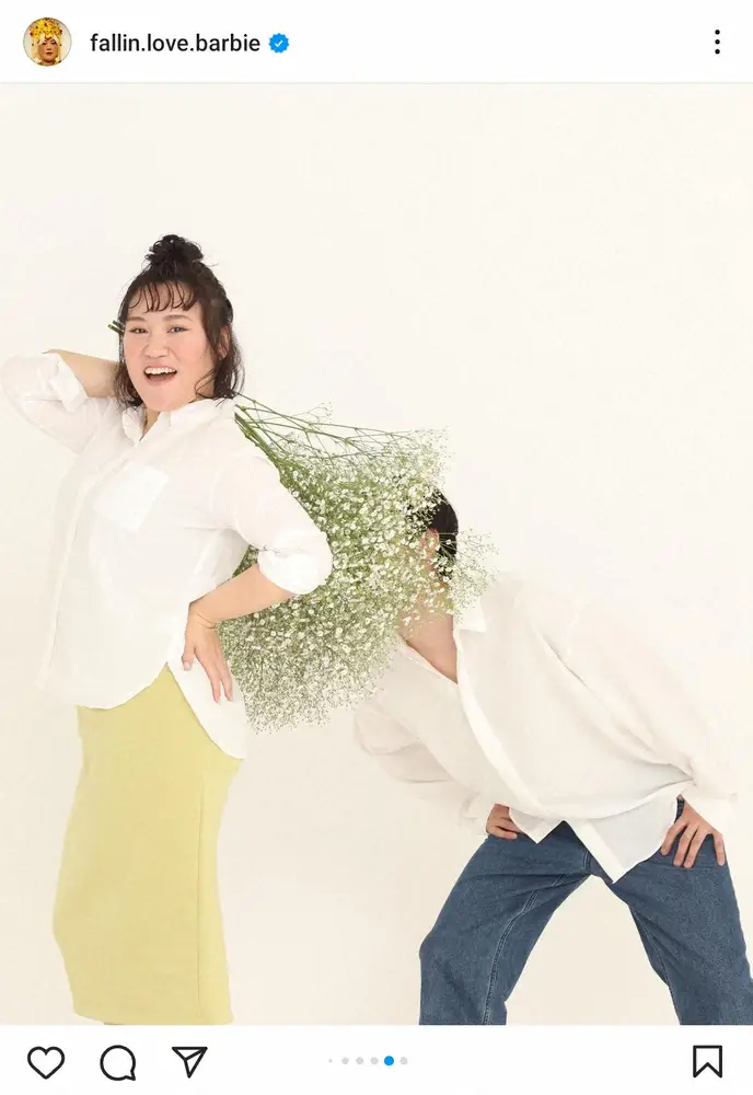 お笑いコンビ「フォーリンラブ」のバービー(40)が14日までに、自身のインスタグラムを更新。13日に「NEWS」の小山慶一郎(39)と結婚したことを発表した「AAA」の宇野実彩子(37)ファンの夫・つーたんについて伝えた。