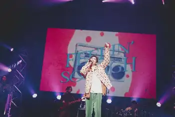 TBSドラマ「最愛」(21年)などで人気を博し、現在放送中のNHK大河ドラマ「光る君へ」で大河初出演が決まるなど俳優として絶好調だが、歌手としても輝いた。手拍子に包まれる中、軽快なステップで登場すると黄色い歓声が巻き起こる。終始音に乗りながら体を揺らし、間奏中には舞台を縦横無尽に駆けて観客に手を振った。「一緒に歌おう!」とあおると、客席からは大合唱。松下は右耳に手を当て、「盛り上がり最高かよ」と満面の笑みで喜んだ。