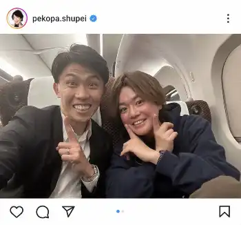 シュウペイ 「高校の時は3年間同じクラス」元サッカー日本代表と「たまたま同じ新幹線に」2ショット