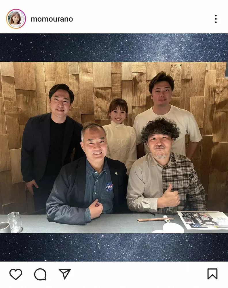 日本テレビの浦野モモアナウンサー(24)が15日までに自身のインスタグラムを更新。“宇宙会”を行ったことを明かし、集合ショットを披露した。