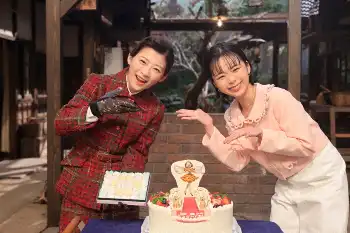 恒例のプレゼント交換。趣里から伊藤に「東かがわ市の讃岐和三盆と手袋」、伊藤から趣里に「『ブギウギ』と『虎に翼』をモチーフにした特製ケーキ」が贈られた。