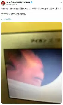 小田は「今日の朝、同じ番組の収録と知って、一緒に行こうと家まで誘いに来た!」と報告。「中学生どころか小学生のまま」と、インターホンのモニターに笑顔で映ったお笑いタレントのもう中学生の写真を公開した。