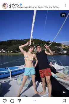 「10年前、NZに一年滞在したけど、そういえば海に入ったのは初めてだった。(浮き輪に乗ってホストファミリーのボートで引っ張ってもらったことはある)笑 良い旅の締めくくりだった。締めくくりから投稿しちゃった」と明かすと、「まだまだNZの写真続きまーす(マオリの方から聞いた神話を早く伝えたい。)写真からエナジー送りまーす @barefootsailingadventuresnz 船長のLukeさん、お世話になりました!」とつづった。船長との2ショットも投稿した。