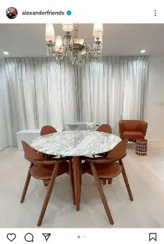 これまで使っていた同じくエルメスのダイニング・テーブルは「気に入ってたんだけど四角かったから角があるのが常に心配で(子どもたち走るから)丸いデザインのテーブルを探してたら見つけたテーブルと椅子なんだ~」とつづった。