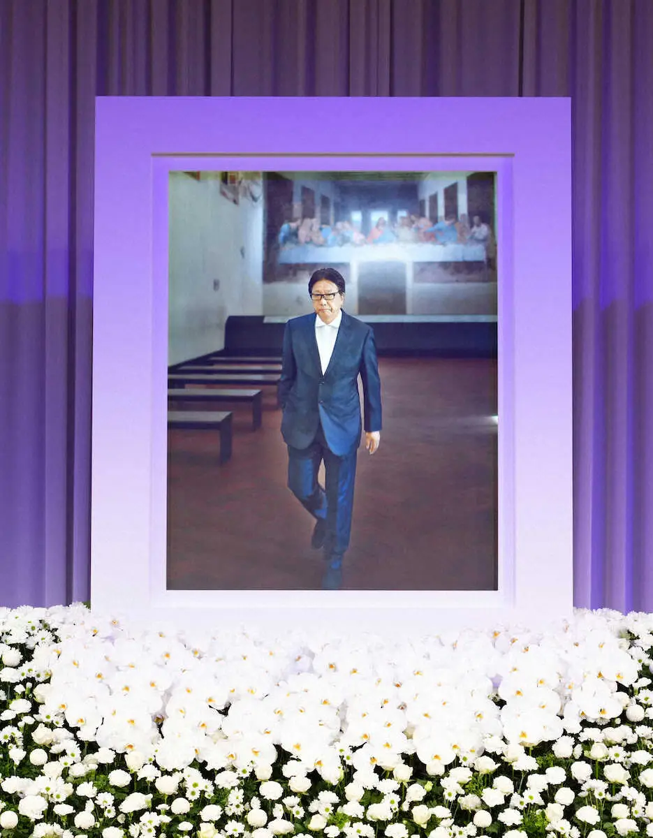 この日は参列者が約400人。遺影には、本人の最近のお気に入りの一枚だったというイタリア・ミラノの「サンタ・マリア・デッレ・グラツィエ教会」を出張で訪れた際にものを使用。レオナルド・ダ・ヴィンチの作品「最後の晩餐(ばんさん)の絵画」が飾ってある。