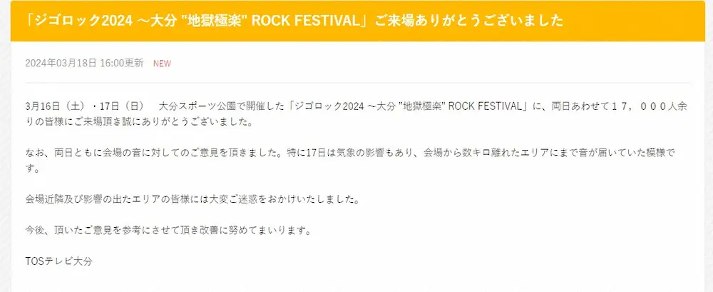 ジゴロック公式サイトから 大分県の音楽フェス、騒音を謝罪 ももクロ、気志團ら出演 近隣から苦情… ギャラリーで見る この記事のフォト 2024年03月19日の画像一覧 もっと見る 2024年03月19日の画像をもっと見る