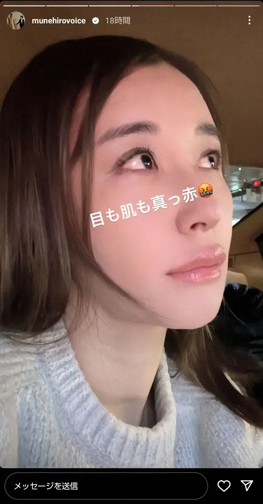 また「目も肌も真っ赤」と症状の出た顔写真や、「花粉対策 マスク2枚重ね」と移動中の姿を公開。「ブロック注射&鼻ボトックスにプラスして」と、花粉の付着を抑制するスプレーや薬も載せ、「GF(=グルテンフリー)生活少し緩めにしたから症状酷いかも また頑張ってみようかなぁ」とつづった。