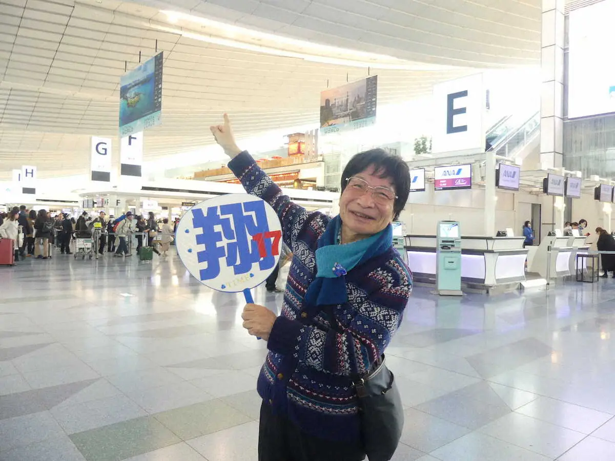 大リーグ・ドジャースの開幕シリーズ(20、21日)を観戦する日本人ツアー客が19日、渡韓した。大谷翔平の大ファンを公言する教育評論家の尾木ママこと尾木直樹氏(77)も同日、羽田空港から現地に出発。自作グッズを手に「行ってきます!」とうれしそうに航空機に乗り込んだ。