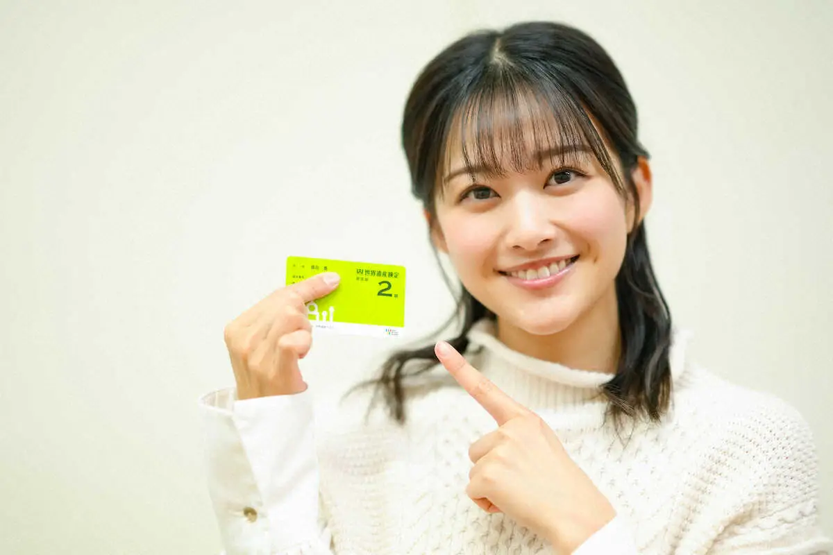 世界遺産検定2級を取得した原田葵アナウンサー(撮影・会津 智海)