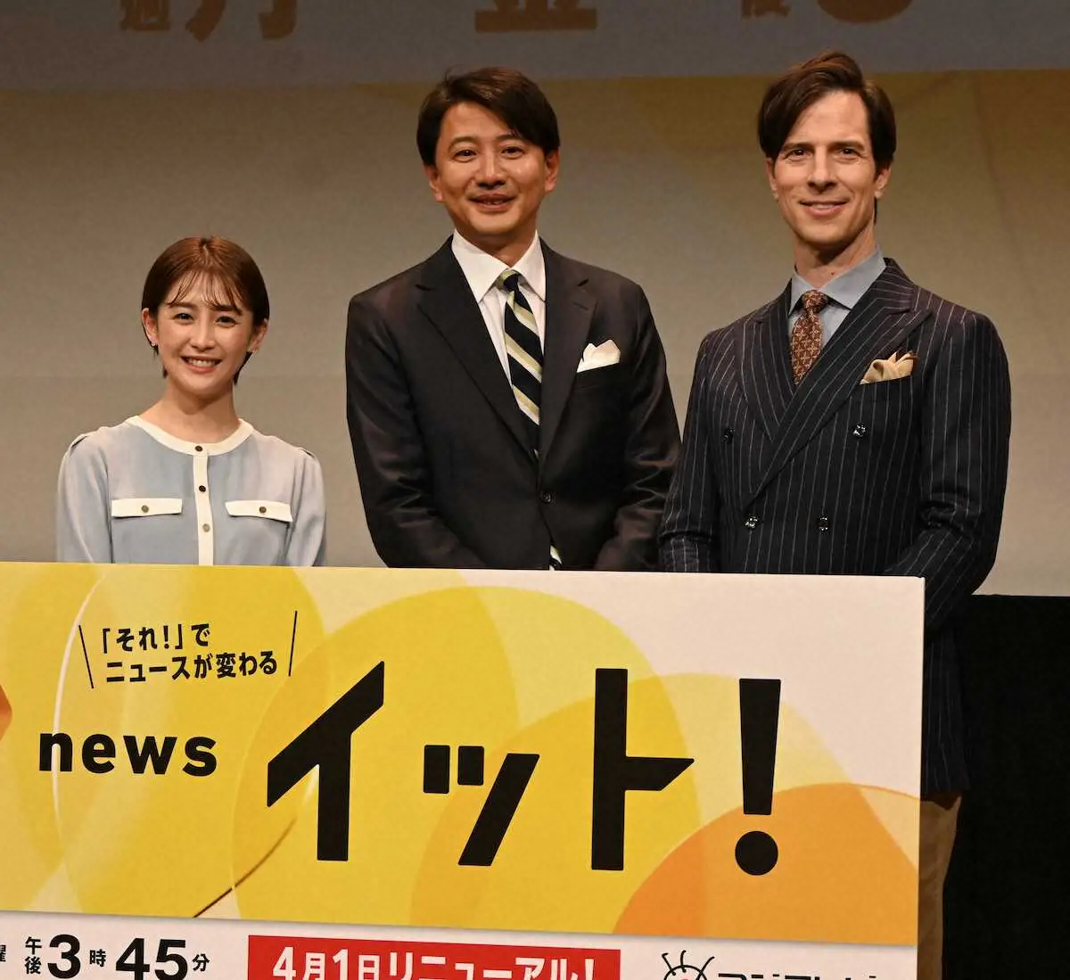 「1カ月ぐらい猶予を…」と宮司アナからツッコミが入ると、「始まって1カ月間、『news イット!』を見ていただきたいと思います!よろしくお願い致します」と3人で笑顔でアピールした。