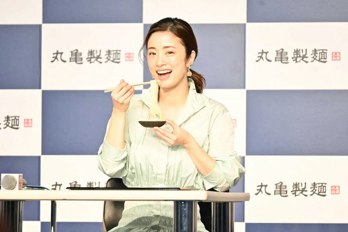女優の上戸彩(38)が21日、都内で丸亀製麺「麺職人を全国すべての店に配置完了」発表会に出席した。