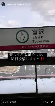 前日にはストーリーズで「楽しすぎる旅でした」と報告。宮城県仙台市の地下鉄・富沢駅の写真を添え、「明日投稿します~!!」と伝えていた。