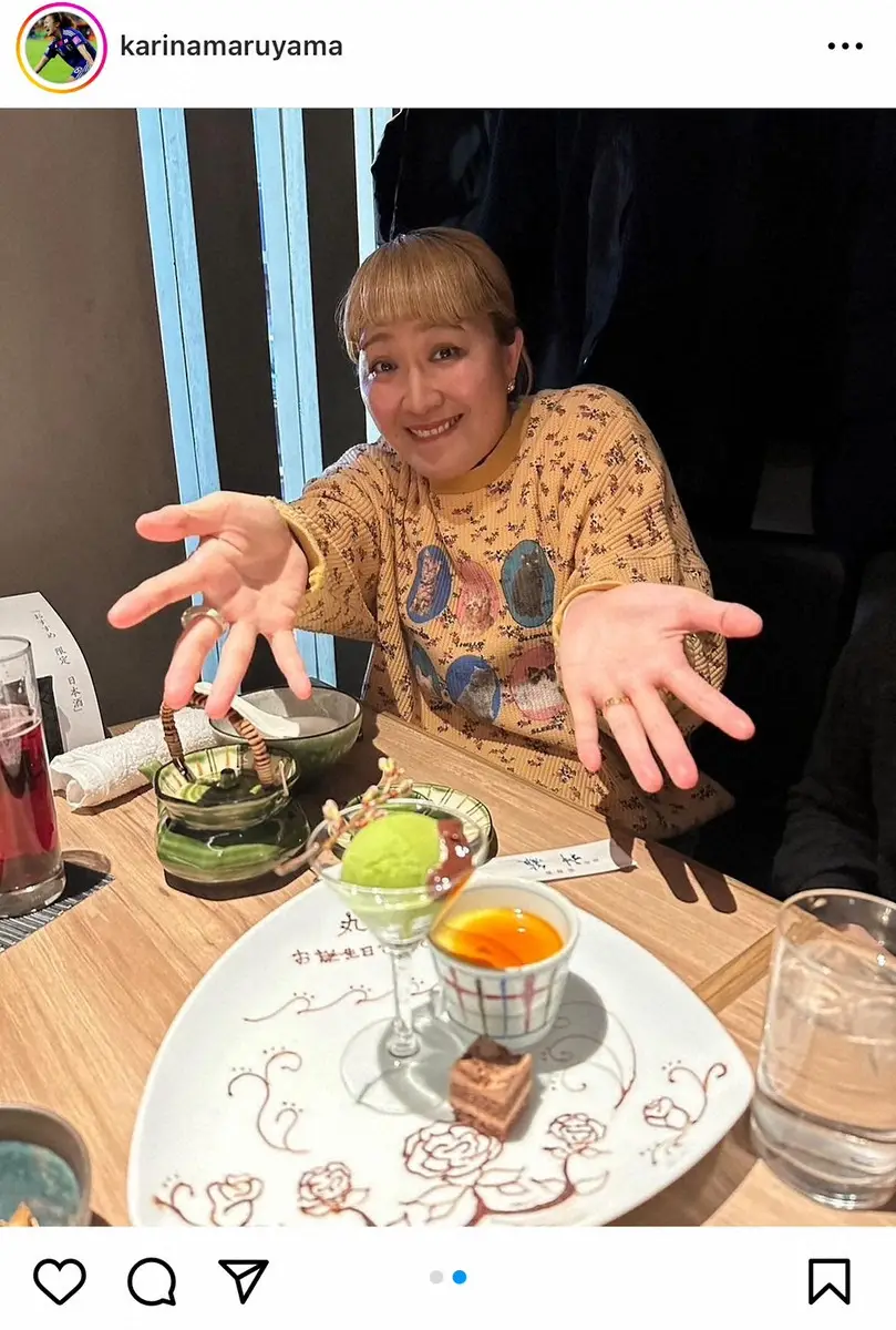サッカー元なでしこジャパンでタレントの丸山桂里奈(40)が21日、自身のインスタグラムを更新。かつての仲間に誕生日を祝ってもらったと報告した。