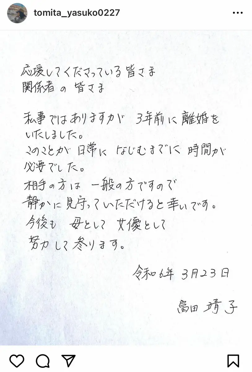 富田靖子 Photo by スポニチ 富田靖子、3年前に離婚していたことを公表「日常になじむまでに時間が必要… ギャラリーで見る この記事のフォト 2024年03月23日の画像一覧 もっと見る 2024年03月23日の画像をもっと見る