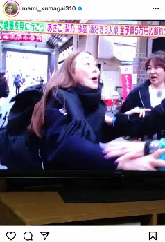 女優の熊谷真実(64)が、24日までに自身のインスタグラムを更新。プライベートで、とある番組ロケに遭遇したことを明かした。