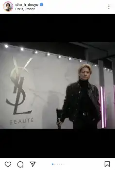 続く投稿では、帽子を取ったブラックコーデでイヴ・サンローラン・ボーテの「YSL LOVE SHINE FACTORY」でのショットを投稿した。