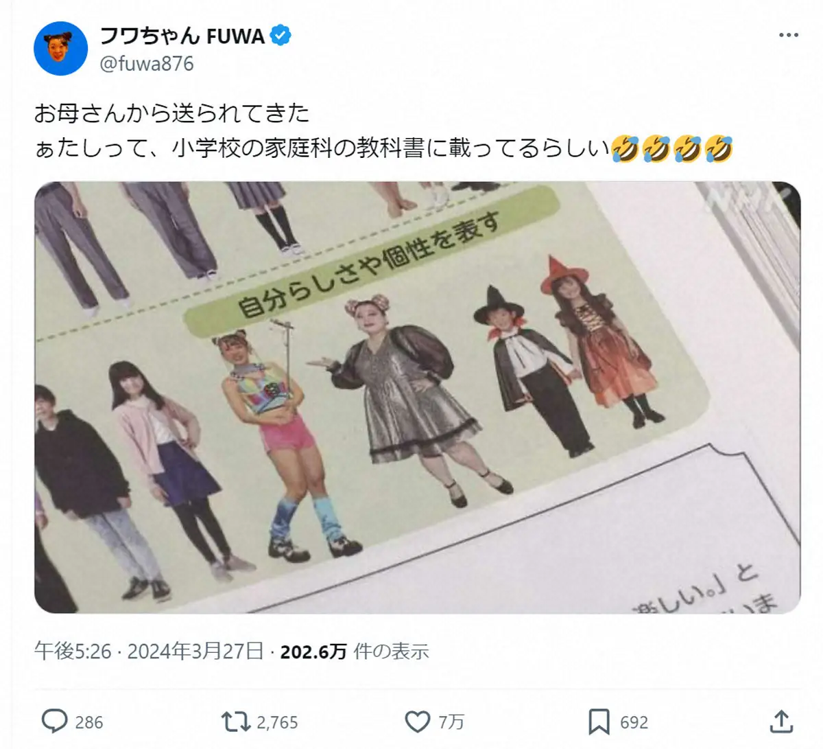 フワちゃん Photo by スポニチ フワちゃん 母親の連絡で知った「小学校の家庭科の教科書に載ってる」 … ギャラリーで見る この記事のフォト 2024年03月27日の画像一覧 もっと見る 2024年03月27日の画像をもっと見る