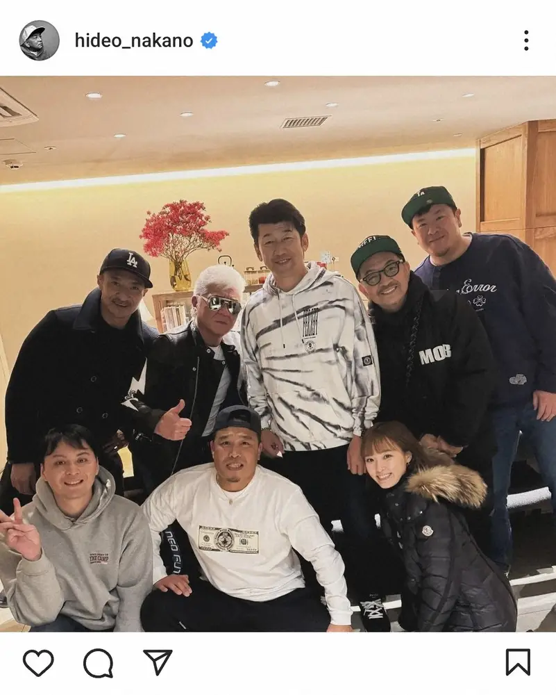 俳優の小沢仁志(61)らと共にDeNA・三浦大輔監督(50)の応援食事会を開いたことを明かし、集合ショットを披露した。