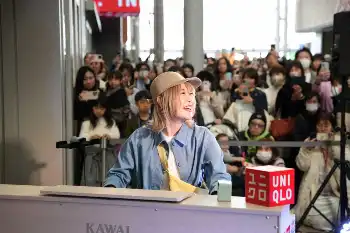 ハラミちゃんが神戸でサプライズ演奏 29(肉)の日開店の「ユニクロ 神戸三宮店」アピール