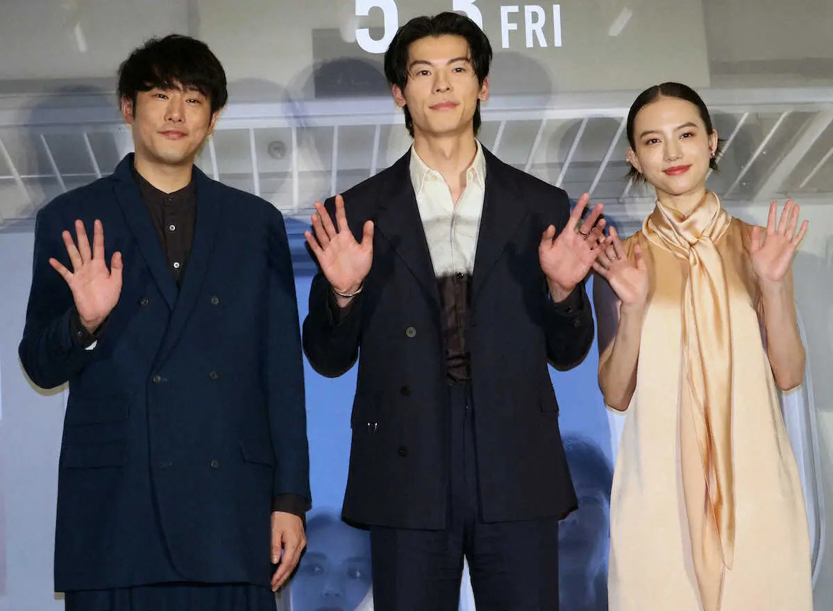 会見を行った(左から)藤井道人監督、シュー・グァンハン、清原果耶
