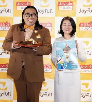 お笑いトリオ「ロバート」の秋山竜次(45)が出演するファミリーレストラン「ジョイフル」の新CM発表会が開催された。