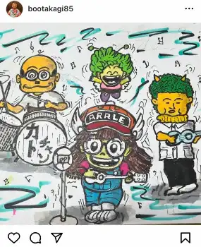 「#ドクタースランプアラレちゃん #鳥山明 #ドリフターズ #加藤茶 #高木ブー」とハッシュタグを付けて投稿された絵に、フォロワーから「全然下手くそじゃないですよ。上手すぎるじゃないですか!」「すごく絵がお上手でビックリ」「絵を見てると演奏と歌が聞こえてきます」「かなり似ています」「上手すぎます」「クオリティ高いですよ」「凄い夢のコラボ」「カトちゃんも雷様も似てる~」「天才です!」など称賛の声が上がった。
