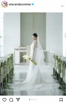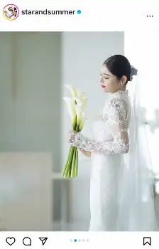 この投稿に、ファンからは「世界で一番綺麗な花嫁姿!」「美しい」「とっても綺麗で素敵」「幸せオーラが滲み出てますね」「このドレス姿を見られて幸せです」「かわいすぎる」「めちゃくちゃキレイ」などの声が寄せられている。