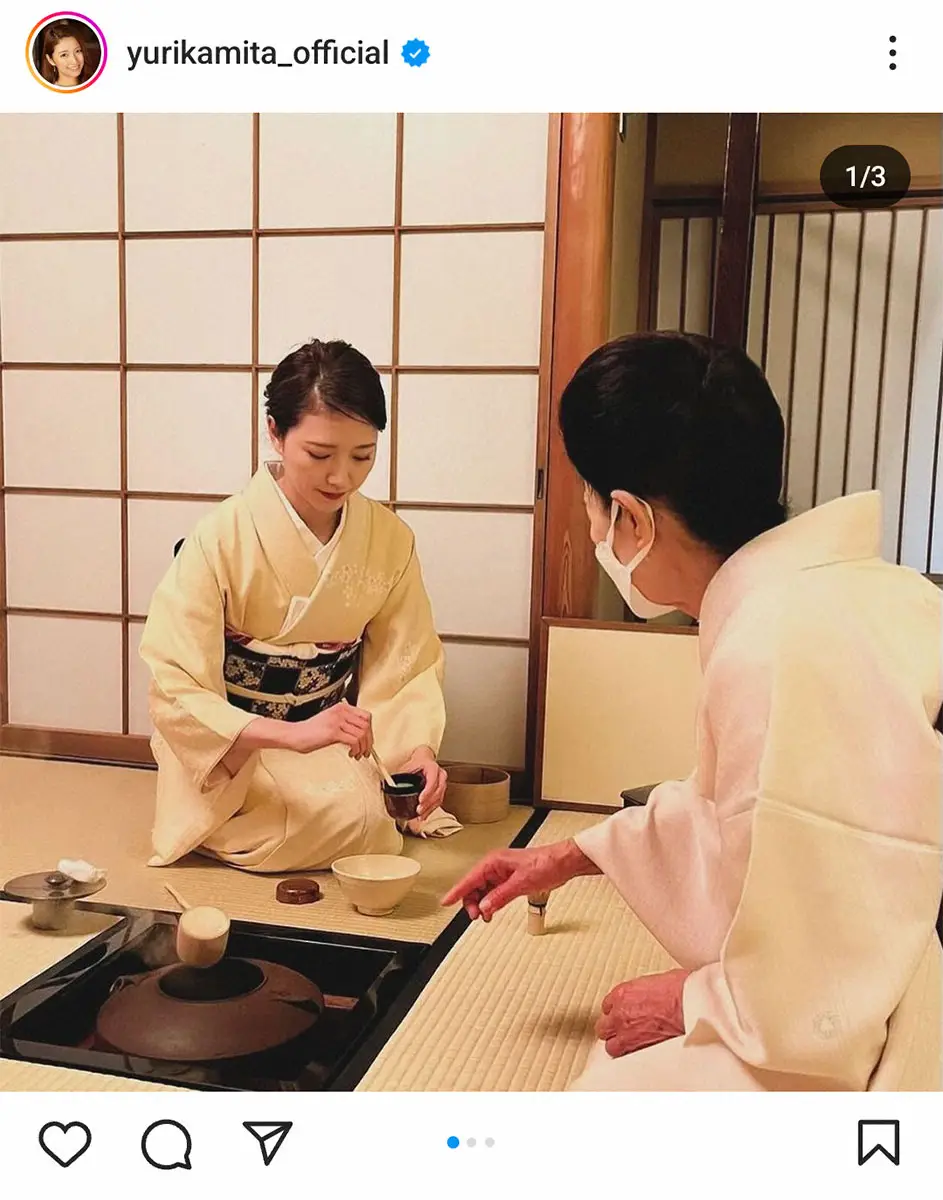 “ミタパン”の愛称で親しまれた、元フジテレビアナウンサーの三田友梨佳(36)が30日、自身のインスタグラムを更新し、和服での茶道姿を披露した。